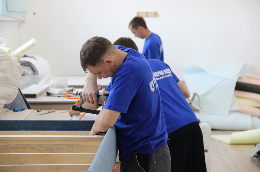 В производстве применяются собственные линейки тканей с высокими эксплуатационными характеристиками. Красивый, приятный на ощупь, износостойкий текстиль любых оттенков используется для обивки мягкой мебели.